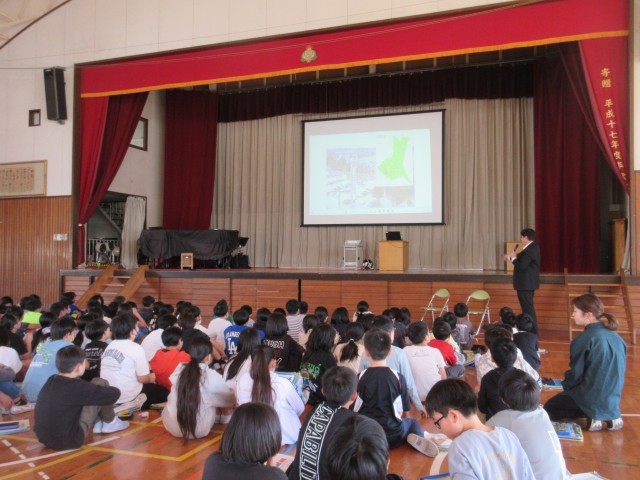 県の出前授業を活用して、単元「自然災害から暮らしを守る」の学習を行いました。