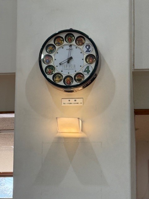 最近の朝のブームは、児童昇降口の時計が8時になると「からくり」を、登校してきた子供たちや登校後の荷物の整理を終えた子供たちが、わくわくしながら見ています。