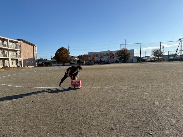 その準備として、体育主任が早朝から校庭にラインを引いて、準備をしていました。