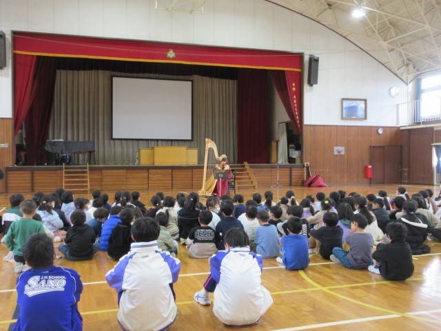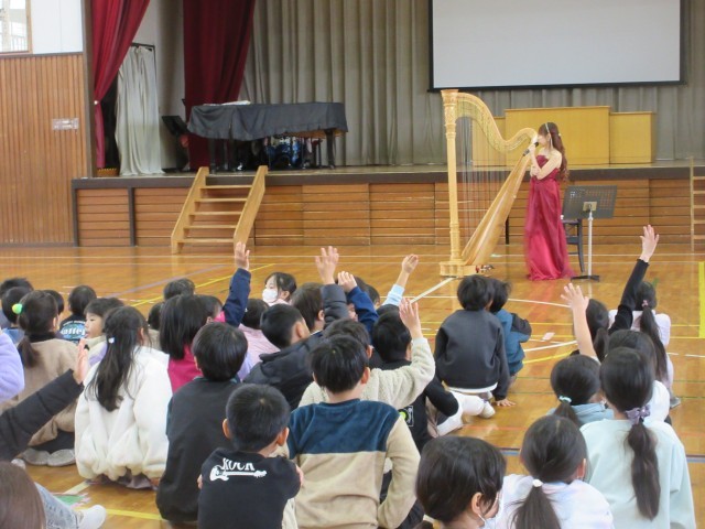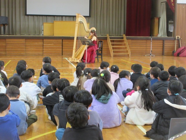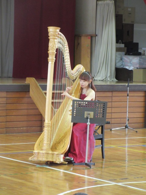 ハープ奏者の邊見美帆子さんが来校し、素敵な演奏とハープについてのお話をしてくださいました。