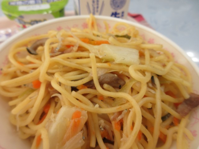 しらすはカルシウムが多く含まれているので、成長期のみなさんには食べてほしい食材のひとつです。給食では、かき揚げや手作りふりかけ、あえもの、混ぜごはんなどに使われています。今日は茨城県産のしらすを使ったペペロンチーノです。「常磐もの」のおいしいしらすを味わっていただきましょう。