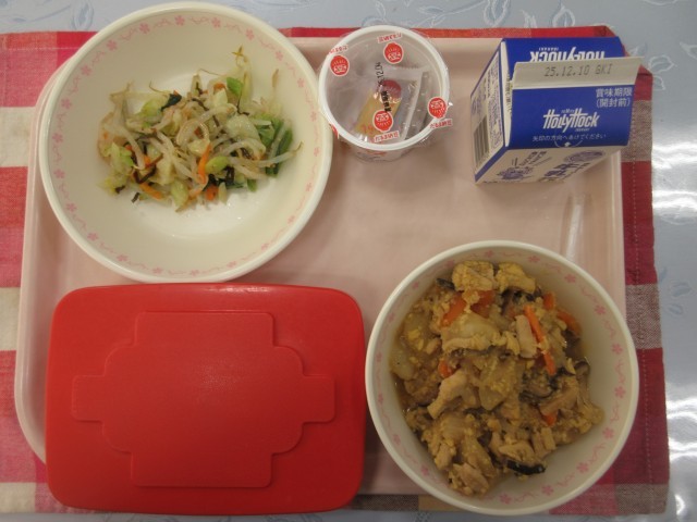 【献立】ごはん 牛乳 納豆 親子煮 ごま昆布あえ
