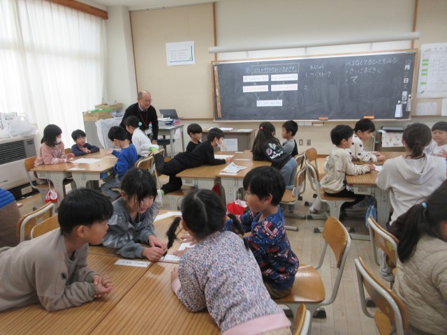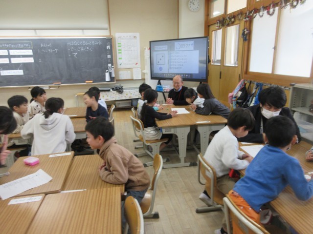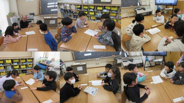 市教育研究所の塙先生をお迎えして、1年生の全学級で「はなしの ききかた名人になろう」の学習を行いました。子供たちは、サイコロトークで、自分の話を最後まで聞いてもらったり、友達の話をしっかり最後まで聞いしたりすることができました。話を聞いた後に、「ありがとう」や「すごいね」「がんばっているね」の賞賛を込めて自然と拍手をしていました。