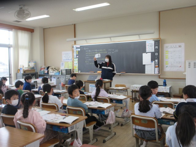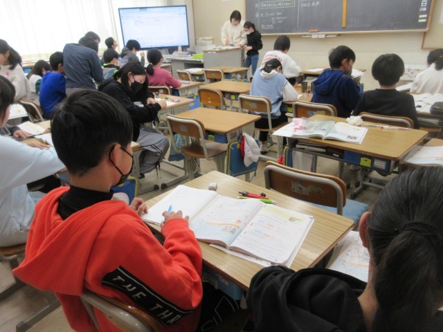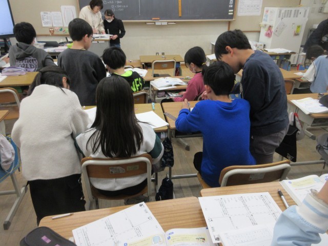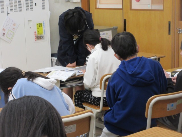 算数の授業では、学習内容に応じて、自力で解いたり、ペア(グループ)で問題に取り組んだりする場面があります。