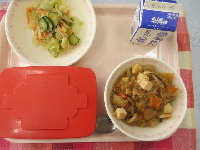 【献立】ごはん 牛乳 マーボー大根 バンサンスー