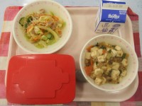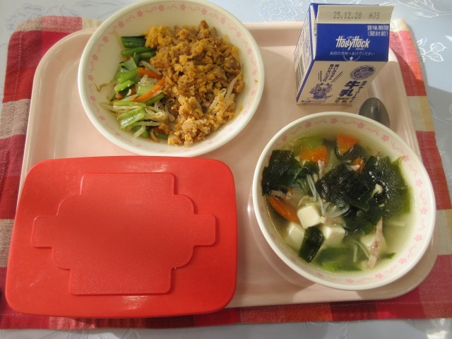 【献立】ごはん 牛乳 切干 し大根入 りビビンバ わかめスープ