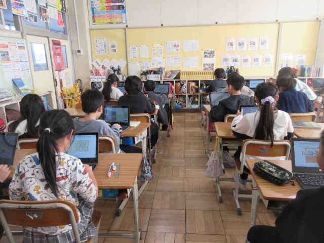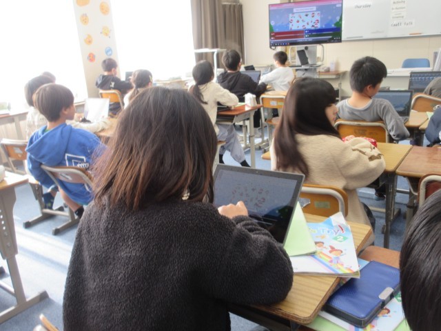 外国語の学習では、2年生も4年生も夢中に取り組んでいて、誰もが前のめりで学習課題に取り組んでいました。