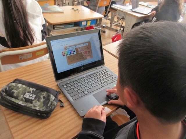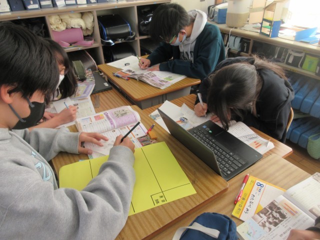 国語と社会では、一心不乱にタブレットに自分考えを入力したり、新聞記事を書いたりしていました。