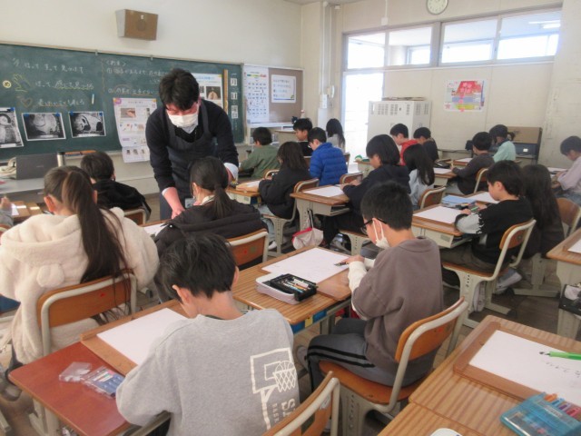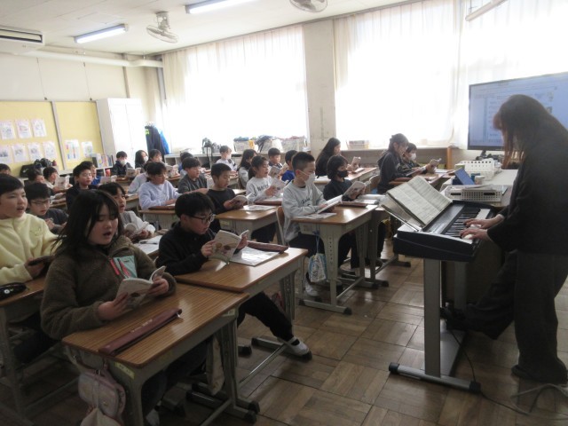 4年生の先生たちが入れ替わって、「音楽」「図工」「国語」の授業を行いました。