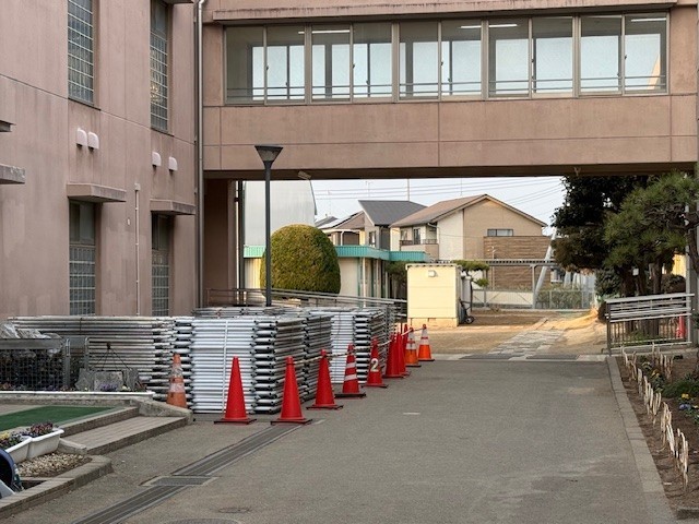 旧校舎の改修工事に伴い、校舎周辺、職員駐車場が狭くなっております。工事車両も多く入ってくるため、余剰スペースがありません。