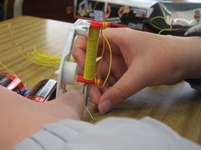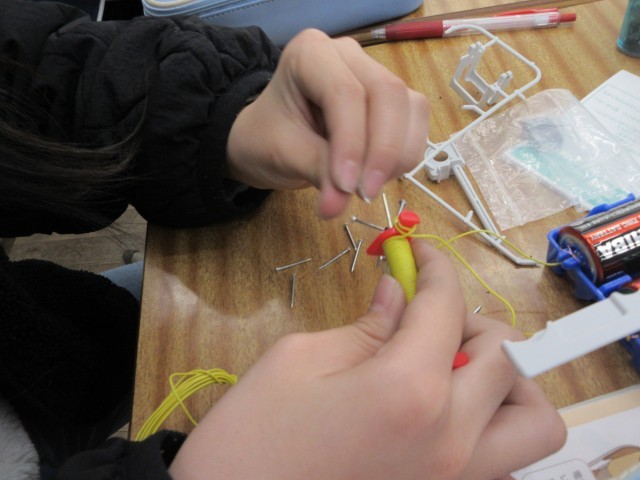 写真の4.5.6枚目は、5年生「理科」電磁石の実験です。自分でコイルを巻いて作った電磁石に、釘が何本付くか実験していました。
