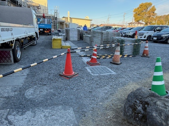 駐車場が狭くなっています。通路の部分も塞がれていますので、駐車場内を歩く際は十分に気を付けてください。