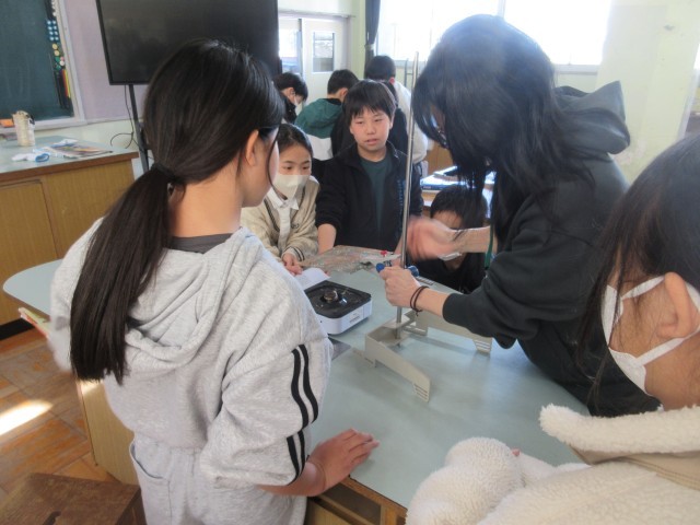 理科支援員の先生と、「金属のあたたまり方」の実験しました。