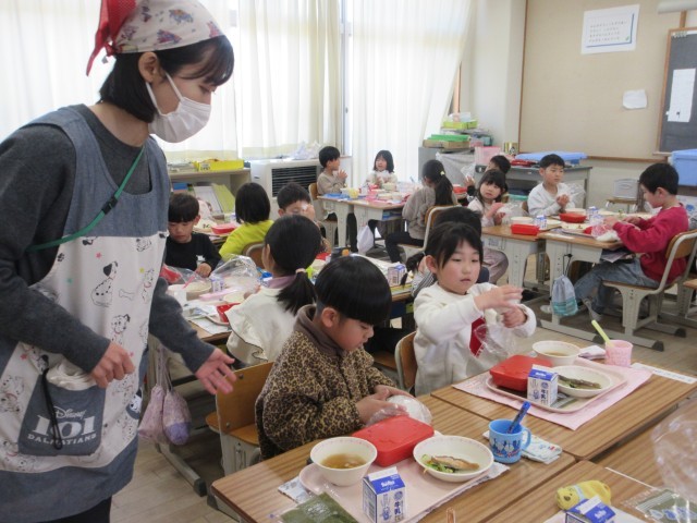 1月24日から30日までは「全国学校給食週間」です。学校給食は、明治22年に山形県鶴岡市で、お弁当を持ってこられない子どもたちに、おむすびと焼き魚、つけものといった簡単な昼食を提供したことが始まりとされています。今週は全国学校給食週間にちなみ、給食のすばらしさをたくさん伝えていけるような献立を届けていきます。今日は学校給食が始まった当時の献立を再現しました。すいとんは、小麦粉に水を加え、やわらかくこねた団子のことで、戦争で食べものが少ないときに、お米の代わりによく食べられていました。今日の給食では、肉やたくさんの野菜を入れて作りましたが、そのころは具がほとんど入っていない団子だけの汁ものでした。当時のことを考えながら、現代では栄養たっぷりで温かい食事ができることに感謝をしていただきましょう。