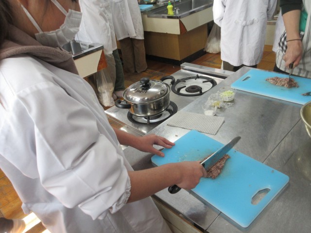 今日と明日の2日間、ひたちなか市食生活改善推進協議会の皆様のご指導の下、「つみれ汁」づくりを行います。