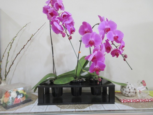 2/18 (水) 胡蝶蘭 公開日 2026/02/18 更新日 2026/02/18 学校の様子 胡蝶蘭の花株をいただきました。並べて飾るために、学校校務員さんが鉢台を作成してくれました。玄関がとても華やかになりました。