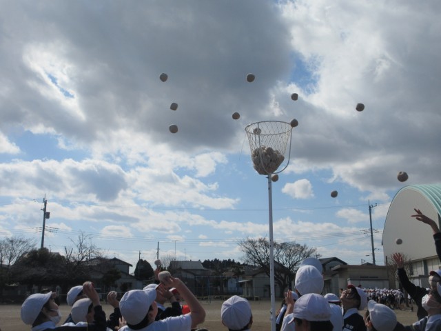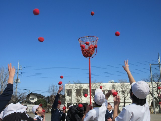 チェッコリの音楽に合わせて、6年前を想い出しながらかわいいダンス&玉入れを楽しみました。さすが6年生なので、入った玉の数はどの学級も30個超えでした。