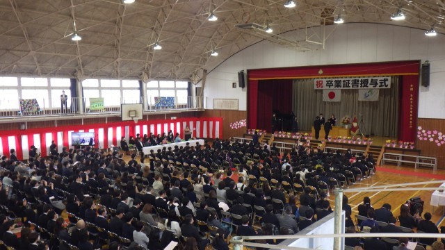 朝の小雨も、式が始まる頃にはやみ、まるで卒業生の新たな門出を祝うかのような空模様となりました。