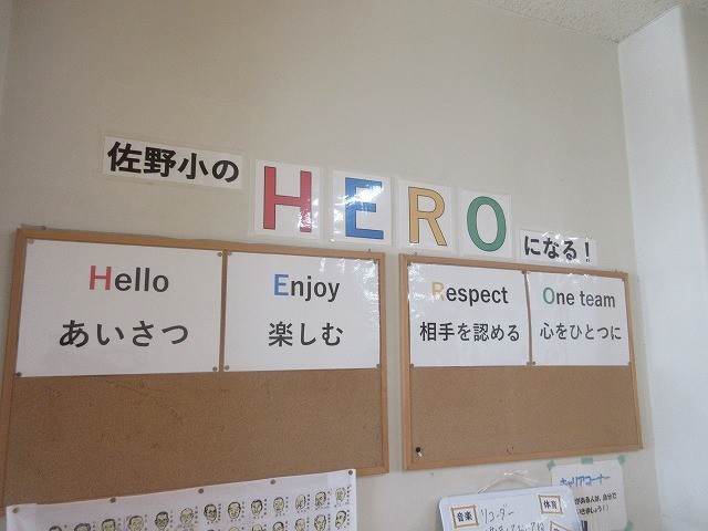 6年生の学年目標です。佐野小のHEROになる!とても頼もしい素敵な目標です。