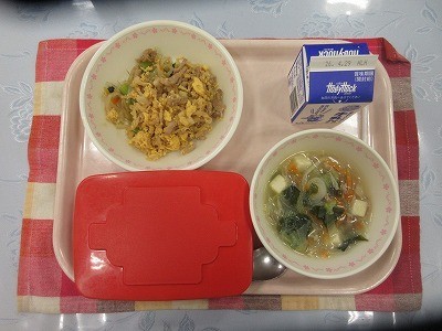 【献立】切り干し大根入りビビンバ(ごはん・肉炒め・ナムル) 牛乳 わかめスープ