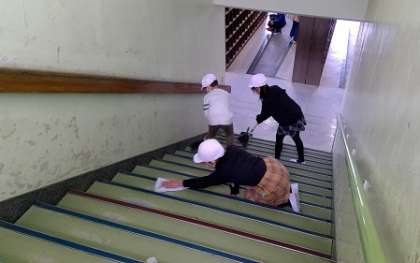 キラリーンウィーク 公開日 2021/12/23 更新日 2021/12/23 校内行事 後期前半の終わりが近づいてきました。12月13日〜17日は,環境委員会によるキラリーンウィークでした。「黙働」・「身支度」など5つのめあてを意識して,清掃に取り組んでいました。教室や階段,昇降口などそれぞれの分担場所で,集中してきれいにすることができました。