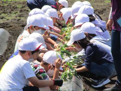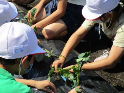 6月13日 3年生がサツマイモの苗を植えました。 大きなサツマイモに育つよう願いを込め、丁寧に植えていました。