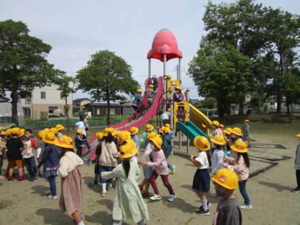 公園では遊具で遊んだり、鬼ごっこや花摘みしたりしました。