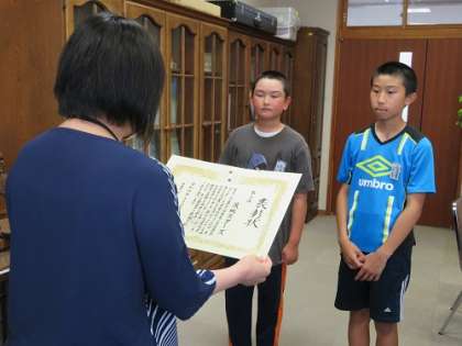 先日、校長室で表彰が行われ、選手の二人から関東大会への意気込みを聞きました。