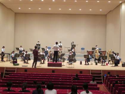 吹奏楽部練習 公開日 2022/07/28 更新日 2022/07/28 その他 7月26日 県吹奏楽コンクールに向けて、市文化会館のホールを借りて練習をしました。本番と同じ衣装に身を包み、ホールに響く音を確認しながら懸命に練習をしました。 本番は8月9日、ザ・ヒロサワ・シティ会館で開催されます。これまでの練習の成果を発揮し、楽しんで演奏してほしいです。