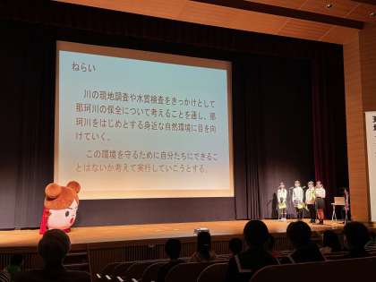本校児童は「未来の那珂川のために」というテーマで、6年生が那珂川の水質について調査したことを報告しました。発表した皆さん、とても素晴らしい発表でした。お疲れ様でした。