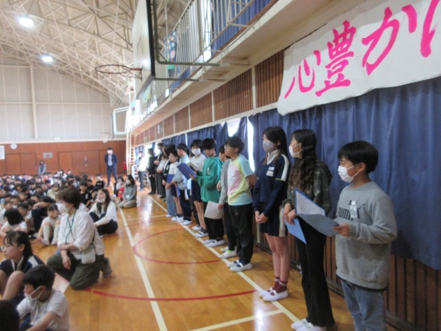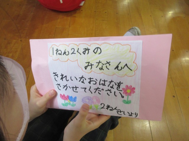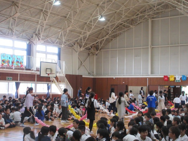 6年生は進行、5年生はアーチ担当、4年生はプレゼント贈呈と役割分担をして、1年生が大喜びの素晴らしい「迎える会」となりました。