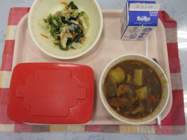 【献立】ごはん 牛乳 チキンカレー 海そうサラダ