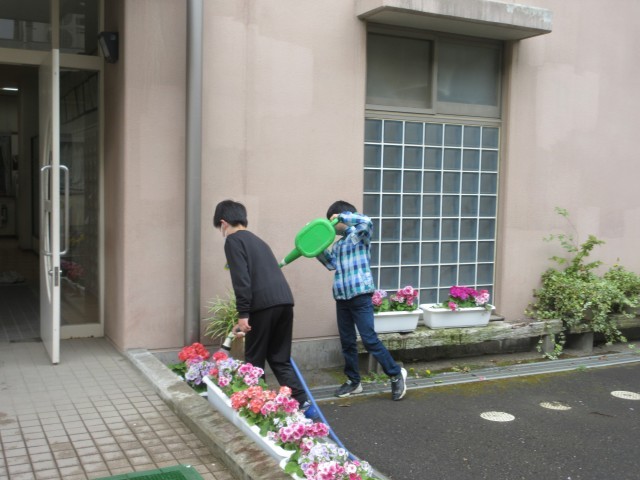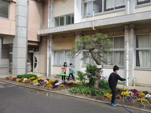 4/23(水) 朝の様子 公開日 2025/04/23 更新日 2025/04/23 学校の様子 栽培福祉委員会の児童が、常時活動で毎朝水やりをしてくれています。今朝は、小雨が降っていましたが、ひさしの下で雨があたらない花を選んで、水やりをしてくれていました。