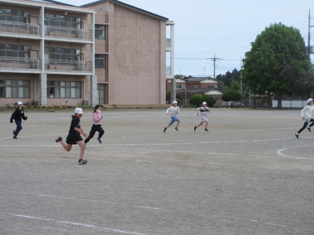 5年生は朝からリレー選手の選抜を予定通り実施していました。ドキドキしながら集まった子供たちは、まず学年主任の説明を聞き、準備体操を行い、全力疾走に備えました。誰もが全力で取り組むことができました。