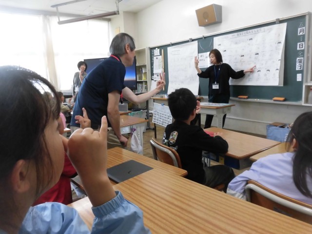 今日は「手話体験」を行いました。子供たちは、講師の先生から自己紹介や挨拶の仕方を学びました。