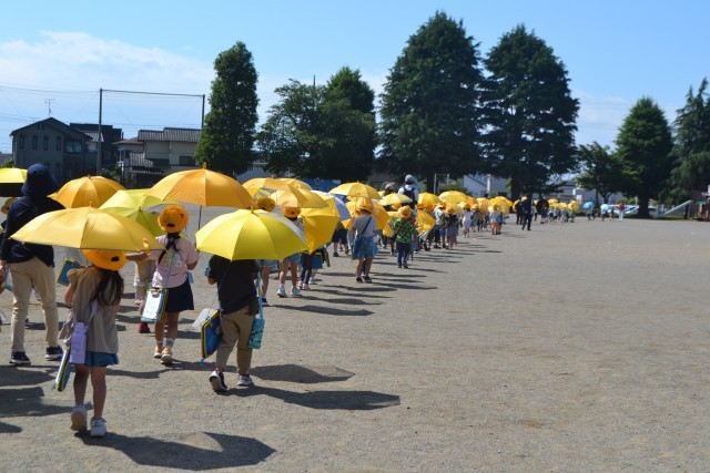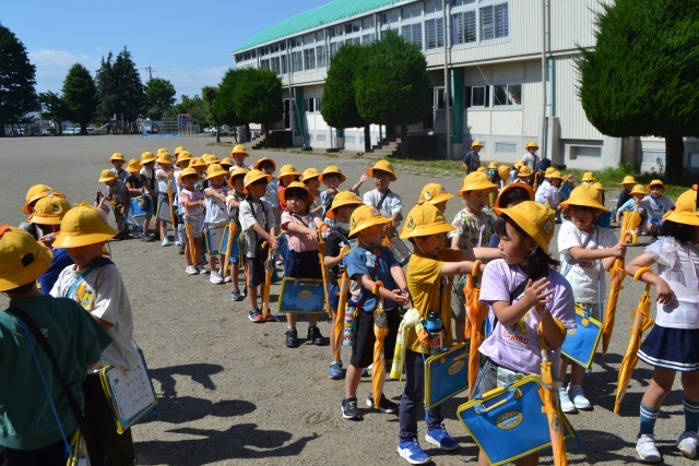 今日は、1年生が上高場公園に公園探検に行きました。公園内の遊具や植物、生き物を観察することができました。小グループの班長さんが活躍している姿も見られました。暑い一日でしたが、日傘などの暑さ対策や保護者の見守りのおかげで安全に楽しく行くことができました。