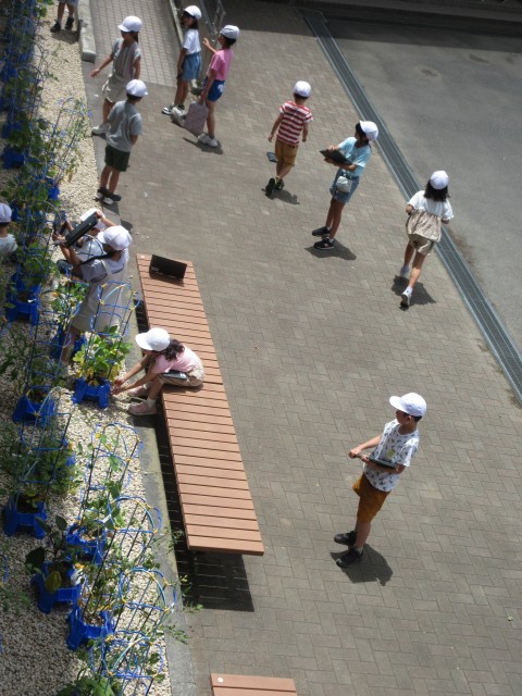 タブレットを手に、自分の育てている野菜の成長の記録を写真におさめていました。