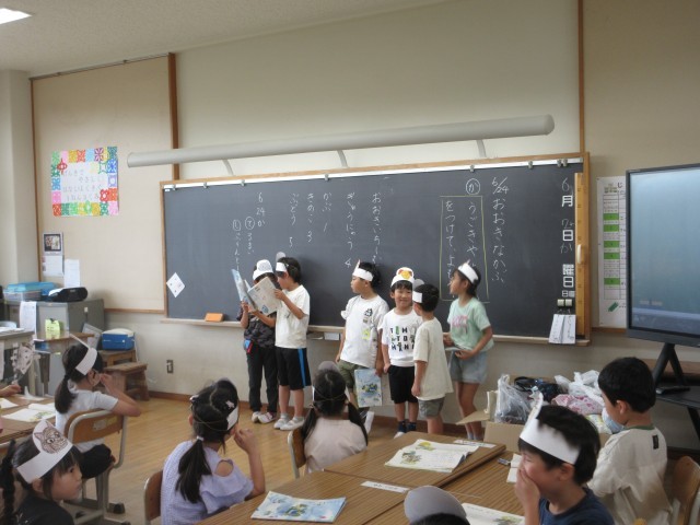 班ごとに、役割演技を混ぜた音読発表会をしていました。
