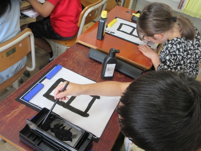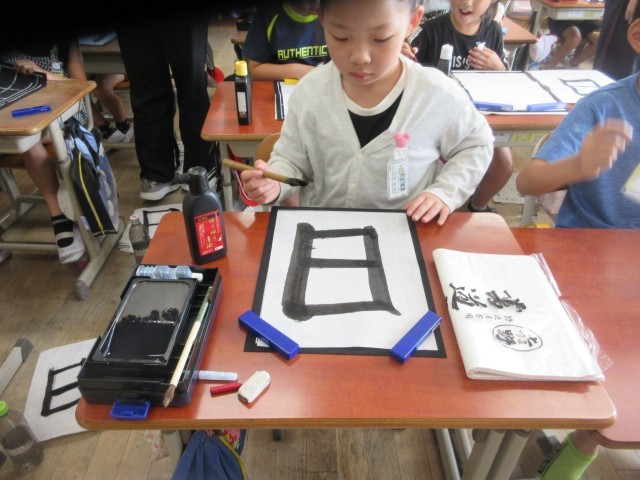 これまで学習してきことを生かして「日」を、ていねいにのびのびと書きあげていました。