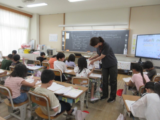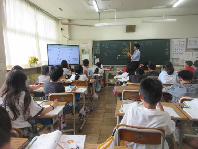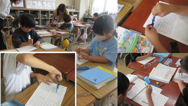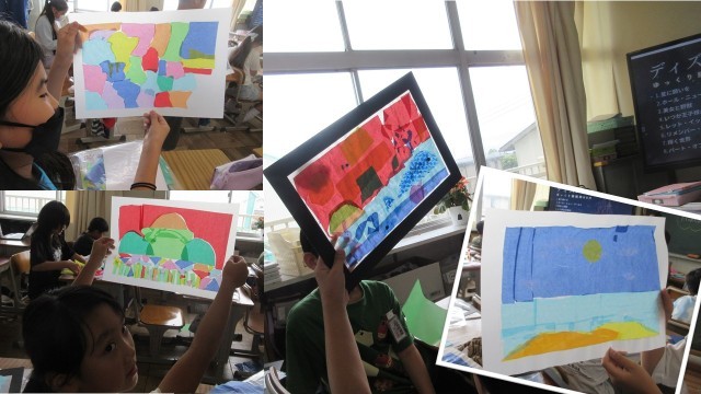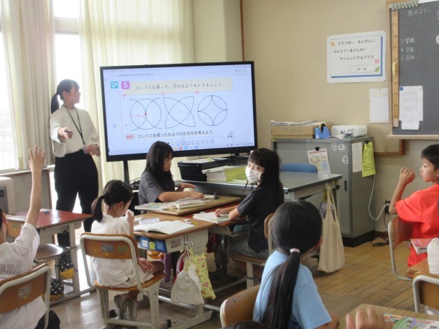 写真は、4年生図工(1.2枚目)、3年生算数(3,4枚目)、2年生算数、2年生体育、4年生算数の様子です。