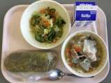 〈献立〉抹茶きな粉揚げパン 牛乳 寒天入りヘルシーサラダ ワンタンスープ 今日...