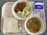 〈献立〉食パン 牛乳 スラッピージョー 粉ふきいも 野菜スープ 今日の「スラッ...