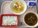 〈献立〉ごはん 牛乳 夏野菜のカレー フルーツカクテル 今日は、夏野菜をたっぷ...