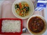〈献立〉ごはん 牛乳 ハッシュドビーフ コーンサラダ 今日は、久しぶりの給食で...