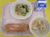 〈献立〉コッペパン 牛乳 さつまいもの米粉シチュー 寒天入りヘルシーサラダ 今...