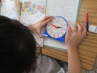 「何時」と「何時半」の時刻を読んだり、模型時計で表したりする学習をしていました。...