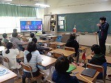 本日は、全校で不審者対応の避難訓練を行いました。子どもたちは冷静に避難したり、身を隠す行動をとったりすることができました。避難終了後は、ひたちなか警察書の立原様に、不審者侵入時や登下時に遭遇した際の身を守る方法などを詳しく教えていただきました。