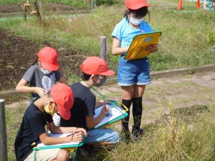 3年生は,ひまわりやホウセンカの観察を行っていました。友達と気付いたことを話合い,とても楽しそうでした。