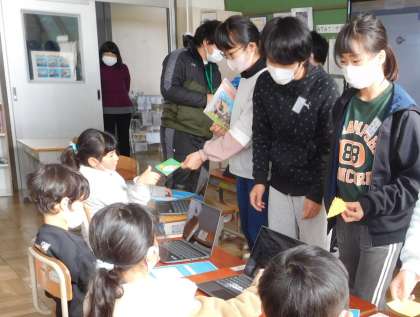 いくつかのグループに分かれ,鬼ごっこや○×クイズ,ビンゴゲームなどをしました。○×クイズは,タブレットを使い,1年生の解答が視覚的に見やすくなるよう工夫されていました。1年生のレベルに合わせて問題を考えることに気を配ったそうです。鬼ごっこは,6年生が1年生を追いかける時は早歩きをするなど,どのグループも1年生を思いやった内容でした。1年生の感想発表では,子どもたちは口々に「楽しかった。」と答えていました。