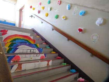 入場は,6年生が各学級の廊下を通り,在校生が拍手で迎える形で始まりました。6年生が通る廊下には,すてきな飾り付けがされていました。